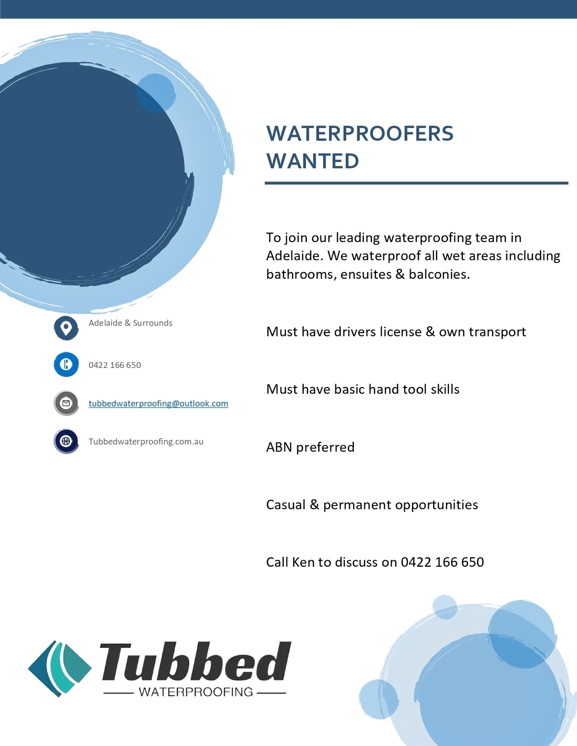 With over 25 years in the building industry, Ken Harriss started his first trade as a cabinet maker in his teenage years. He then became a qualified Tiler and started his own successful tiling business, specialising in bathrooms and wet areas for the last 20 years. Due to his vast wet area expertise and desire to further his trade he started Tubbed Waterproofing. Working with leading market products like Mapei ensures quality work and finishes in all jobs no matter big or small. Ken has gained a great understanding of how the building industry works and will always work together with other trades to ensure the customer has a positive experience.
